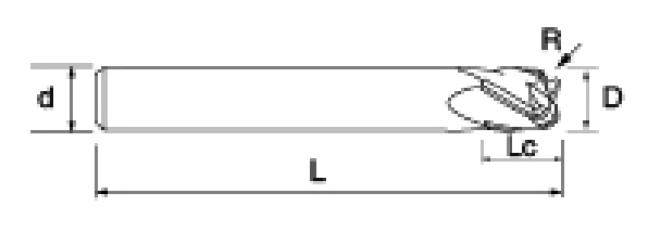 | Não. | Diâmetro D | Ângulo R R | Comprimento da Flauta euc | Comprimento total L | Diâmetro da haste d | Contagem de lâminas F |