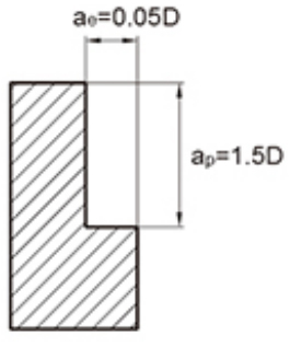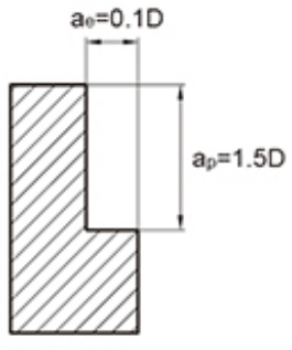 A tabela acima mostra os valores padrão para usinagem de fresamento lateral. Ao cortar ranhuras com a ferramenta, a velocidade deve ser de 50% ~ 70% da tabela acima e a taxa de avanço deve ser de 40% ~ 60% como valor padrão.
