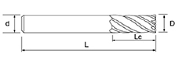 | Não. | Diâmetro D | Comprimento da Flauta euc | Comprimento total L | Diâmetro da haste d | Contagem de lâminas F |