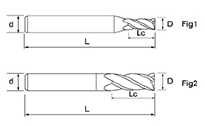 | Não. | Diâmetro D | Comprimento da Flauta euc | Comprimento total L | Diâmetro da haste d | Contagem de lâminas F |