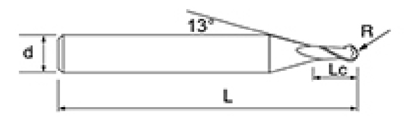| Não. | Diâmetro D | Ângulo R R | Comprimento da Flauta euc | Comprimento total L | Diâmetro da haste d | Contagem de lâminas F |