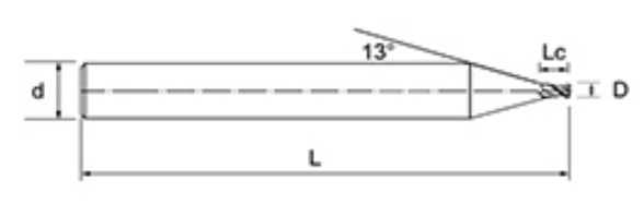 | Não. | Diâmetro D | Ângulo R R | Comprimento da Flauta euc | Comprimento total L | Diâmetro da haste d | Contagem de lâminas F |