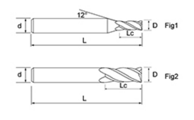| Não. | Diâmetro D | Comprimento da Flauta euc | Comprimento total L | Diâmetro da haste d | Contagem de lâminas F |