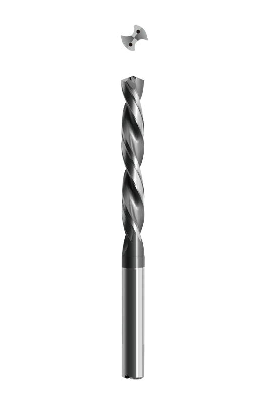 • Broca helicoidal de haste reta com refrigeração interna/externa.